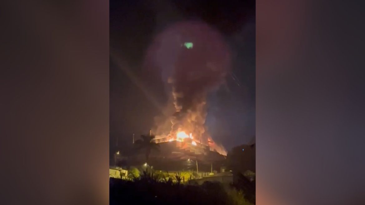 Um incêndio de grandes proporções atingiu uma indústria na região da cidade de Jambeiro, no interior de São Paulo, desde as primeiras horas desta quinta-feira (5).