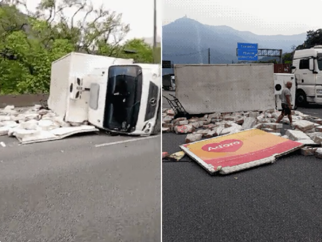 A ocorrência gerou a interdição de duas faixas, resultando em um congestionamento de quatro quilômetros, entre os kms 50 e 54. Equipes da concessionária realizaram o destombamento do caminhão por volta das 9h. A liberação total das faixas de rolamento aconteceu às 9h50.