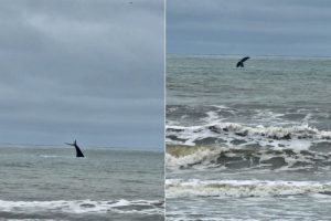 Baleia-franca-austral surpreende banhistas e pescadores ao saltar próximo à costa. 28 de agosto de 2025 Leia Mais »