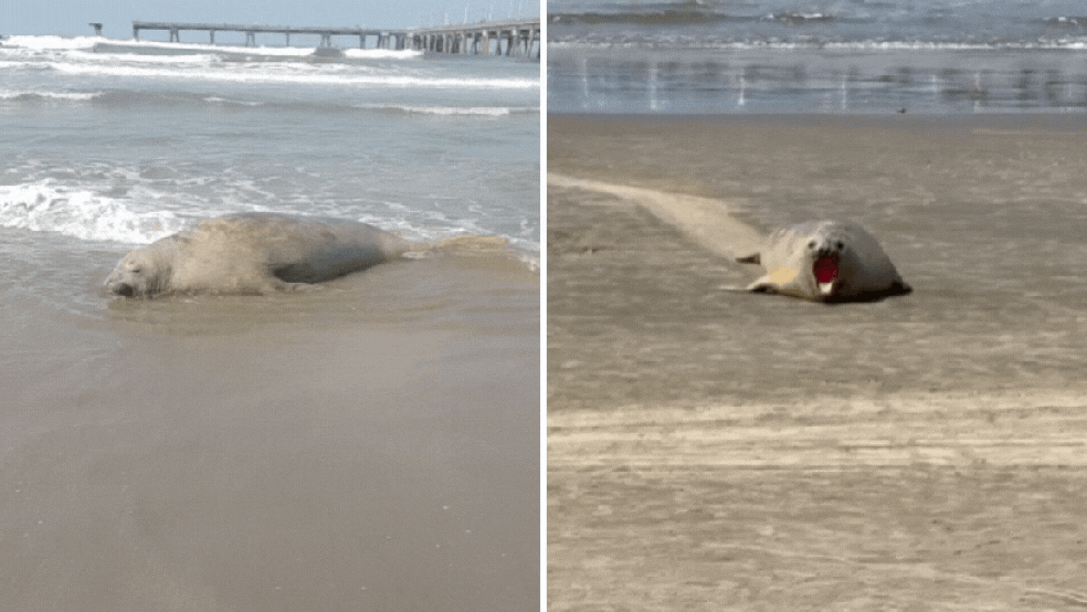 O mamífero apareceu pela primeira vez às 10h30 e ficou por quase uma hora na areia, quando decidiu retornar ao mar. Pouco depois, a fêmea retornou novamente a faixa de areia, atraindo a atenção de moradores e turistas.