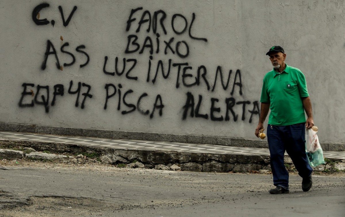 Nos três primeiros municípios citados acima, O GLOBO encontrou muros e placas com pichações de siglas de grupos criminosos. As inscrições mostram uma espécie de advertência para quem transita pelas localidades, incluindo restrições como a proibição do uso de capacete em determinadas ruas e a obrigatoriedade de trafegar em veículos com janelas abertas e farol baixo.
