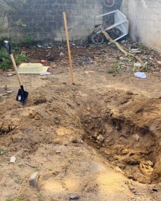 A polícia chegou ao local após uma denúncia detalhada indicar o exato local onde o corpo estaria enterrado. Os agentes realizaram escavações no quintal e localizaram os restos mortais da vítima, que estavam em avançado estado de decomposição. A confirmação oficial da identidade da mulher, portanto, dependerá de um exame de DNA.
