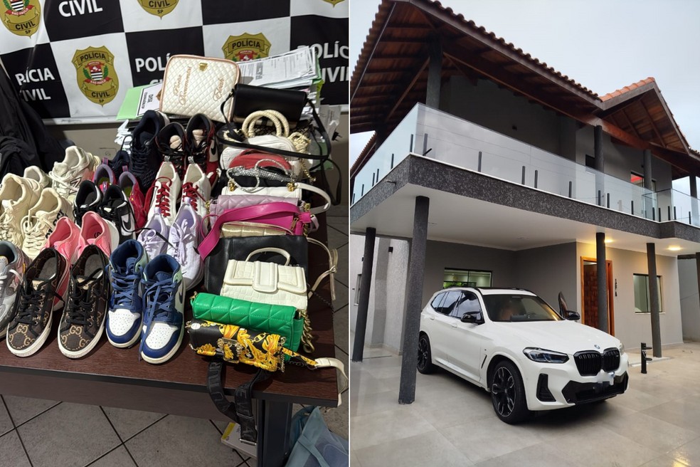 Os agentes localizaram e apreenderam R$ 195 mil em artigos de luxo, incluindo calçados e acessórios das marcas Gucci, Louis Vuitton, Versace, Dolce & Gabbana, Prada e Jordan, além de cinco aparelhos telefônicos. Na garagem do imóvel, a corporação também apreendeu um veículo BMW X3, do ano de 2024, avaliado em aproximadamente R$ 480 mil, registrado em nome da companheira do homem.