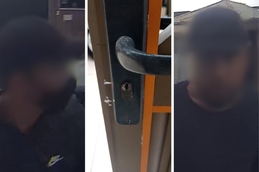 A dupla se aproxima da casa, e um deles chega a encarar a câmera antes de tapá-la com as mãos. Ele continua bloqueando a lente para tentar esconder o comparsa, que forçava a fechadura para abrir a porta.