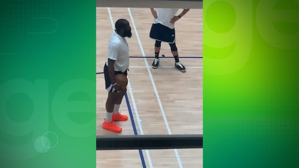 Astro da NBA, James Harden aparece com mais quilos do que o habitual nas férias. Um dos grandes nomes em atividade na NBA, o ala-armador James Harden chamou a atenção ao ser flagrado com um visível sobrepeso enquanto praticava basquete, nesta semana, na China, durante as férias. Em ficha no site da liga americana, o veterano de 35 anos aparece com 100kg e 1,96m.