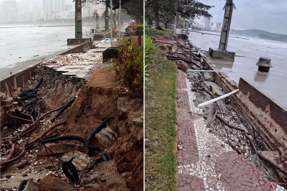 A prefeitura afirmou que os serviços entre o Posto 6 e o Aquário Municipal, na Ponta da Praia, já foram concluídos. As intervenções incluíram o reparo de trechos da calçada, reposição de areia em áreas desassoreadas e limpeza completa da região.