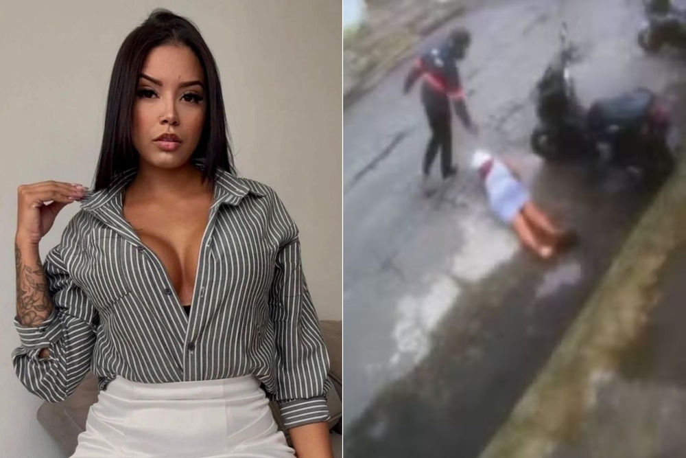 Imagens mostram o momento em que Brenda estacionou uma motocicleta em frente ao estabelecimento. Instantes depois, um homem com um capacete caminhou na direção dela. O criminoso atirou e fugiu, deixando a vítima caída no chão. A ação durou menos de um minuto.