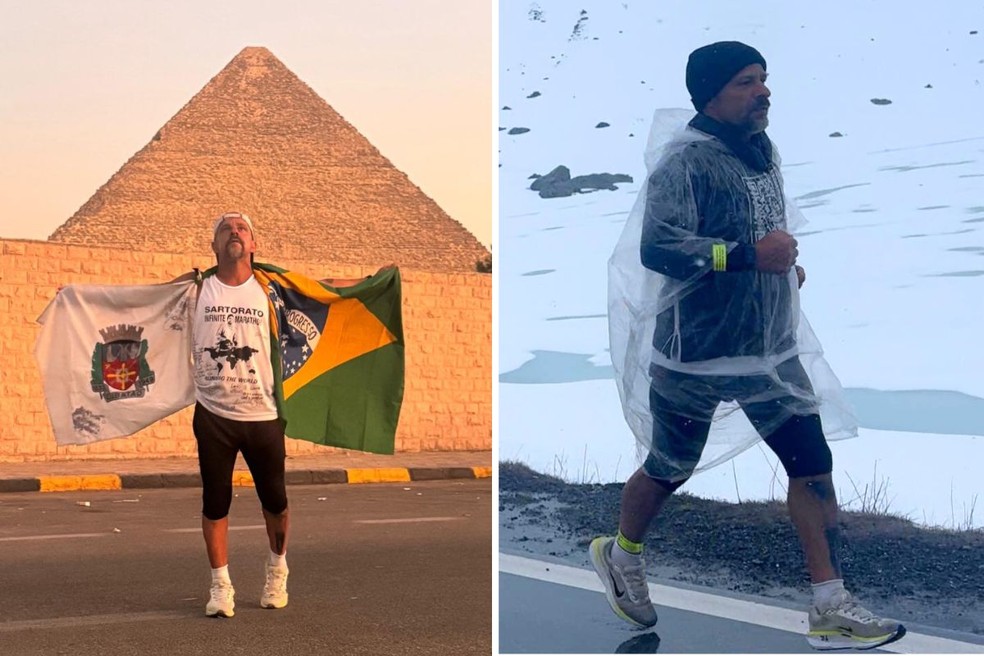 O ultramaratonista Alexandre Sartorato, de 52 anos, deu a volta ao mundo pela segunda vez. Ao g1, o atleta contou que percorreu 27 países em 5 continentes durante 102 dias. Para isso, ele foi colocado à prova em diferentes cenários, que variaram de -10°C nos Alpes Suíços a quase 40°C perto do deserto do Egito. “Nada é impossível se temos fé em Deus, disciplina e determinação”, disse.