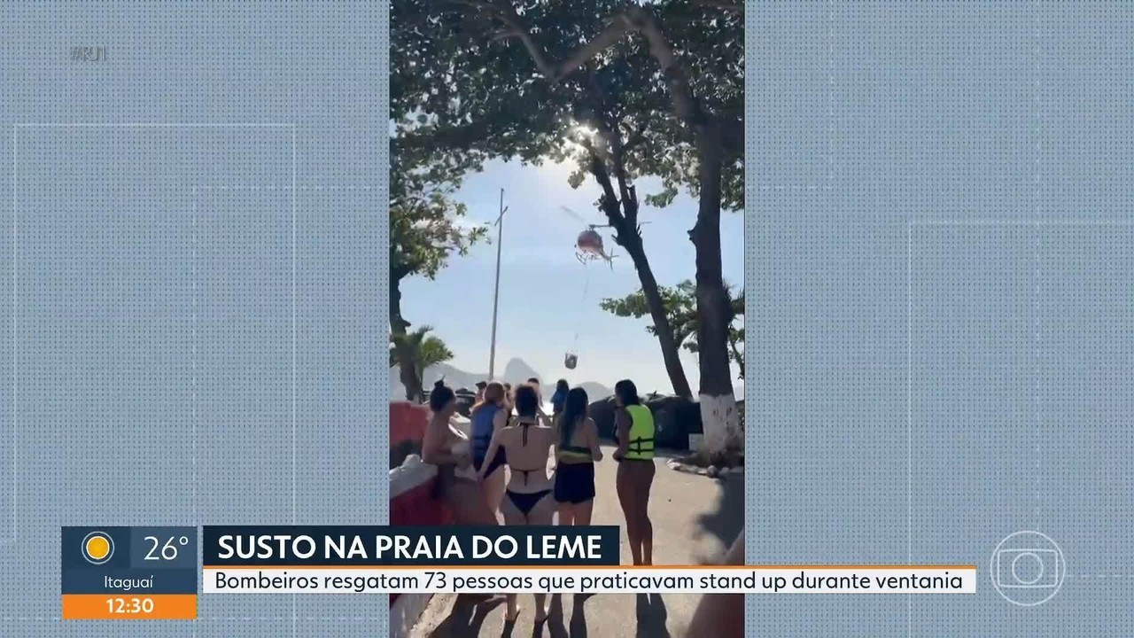 Na manhã deste sábado, o Corpo de Bombeiros resgatou 73 pessoas que praticavam stand up paddle na Praia do Leme, na Zona Sul do Rio de Janeiro. Uma forte ventania surpreendeu um grupo de mais de 100 pessoas, empurrando-as para dentro do mar e dificultando o retorno à orla. O incidente mobilizou equipes de salvamento, incluindo embarcações e um helicóptero.